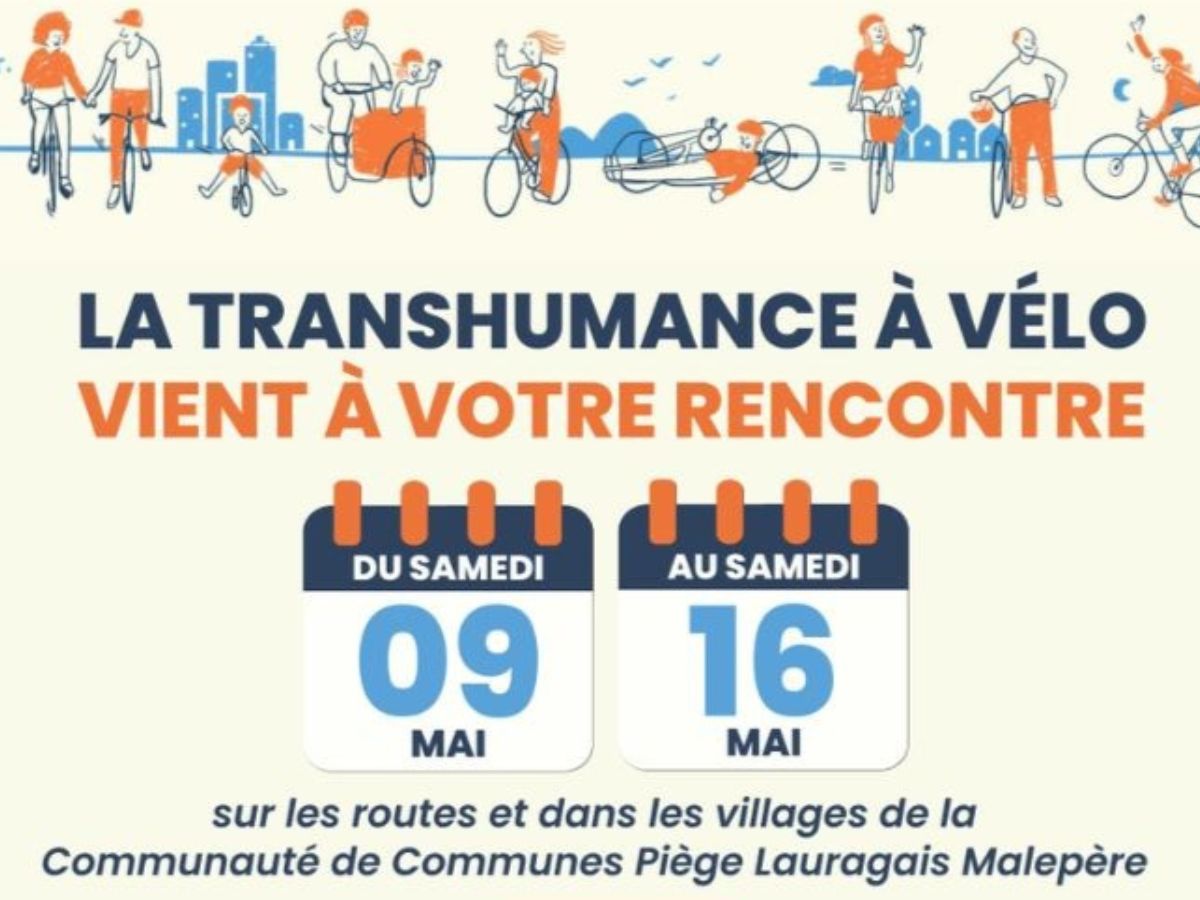 Dans le cadre de Mai à vélo, et de sa grande Transhumance à vélo (du 09 mai au 16 mai), le service mobilité de la Communauté de Communes Piège Lauragais Malepère vous invite à une journée conviviale, festive et dédiée aux mobilités douces.