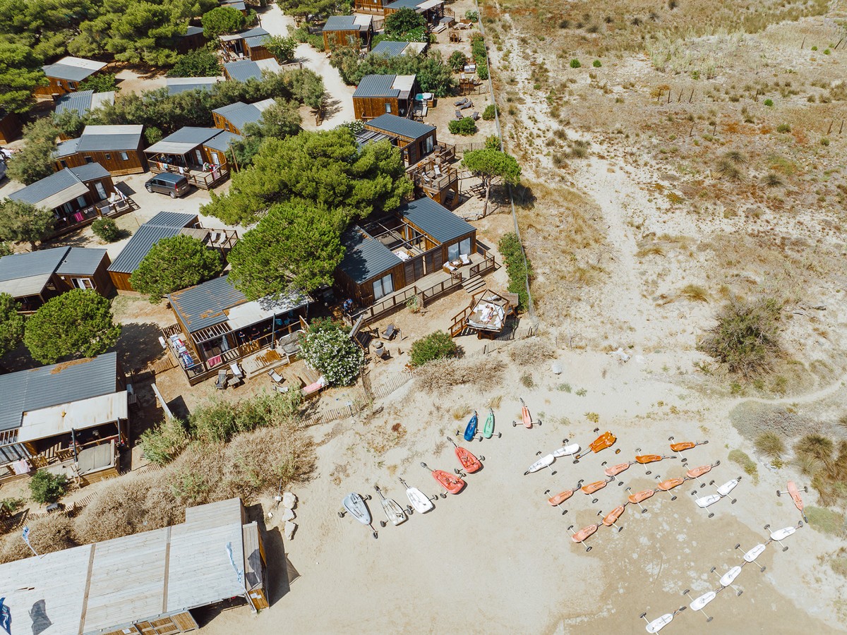 270 parcelas de camping separados por setos y plantas directamente en el spot de kitesurf y kitebuggy de Coussoules.