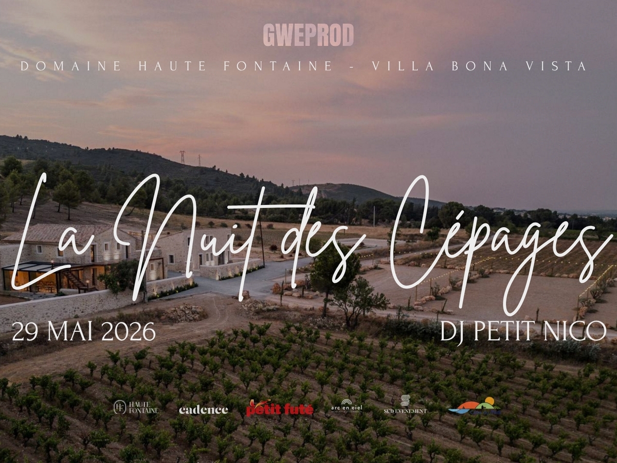 DJ Petit Nico, actif depuis plus de 30 ans, s’associe à Arthur Boivert pour lancer La Nuit des Cépages : une soirée itinérante au cœur des domaines viticoles du sud de la France.