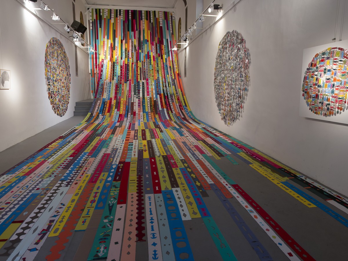 – Sophia El Mokhtar (Mur de tissus, 2014-2025) déploie une cascade collective de tissus colorés, au croisement entre création contemporaine, œuvre participative et références à l’histoire textile locale.