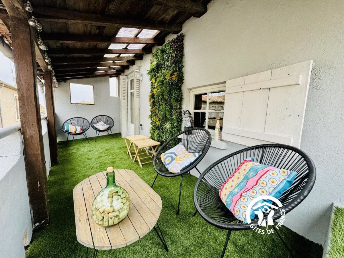 Sur place, vous disposerez d’une belle terrasse entièrement privative en hauteur avec mobilier de jardin pour profiter de moments de détente ou de convivialité. Un garage privatif attenant est à votre disposition pour garer votre véhicule ou pour ranger des vélos. Le gîte situé en centre-ville est toutefois dans une ruelle très calme et peu passante (voitures ou piétons) idéal pour se reposer.