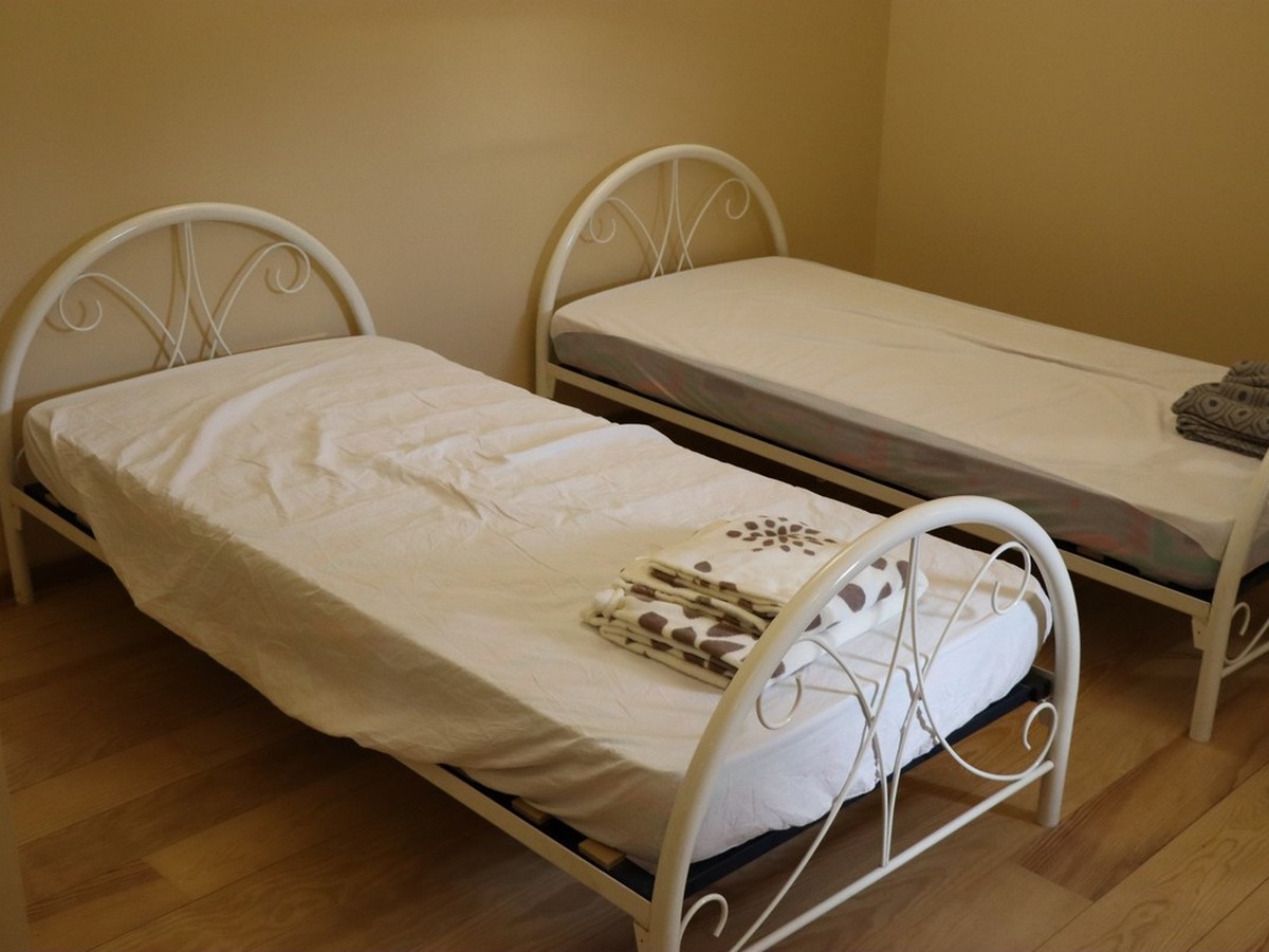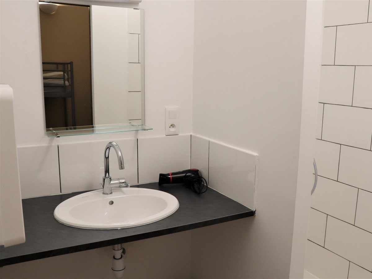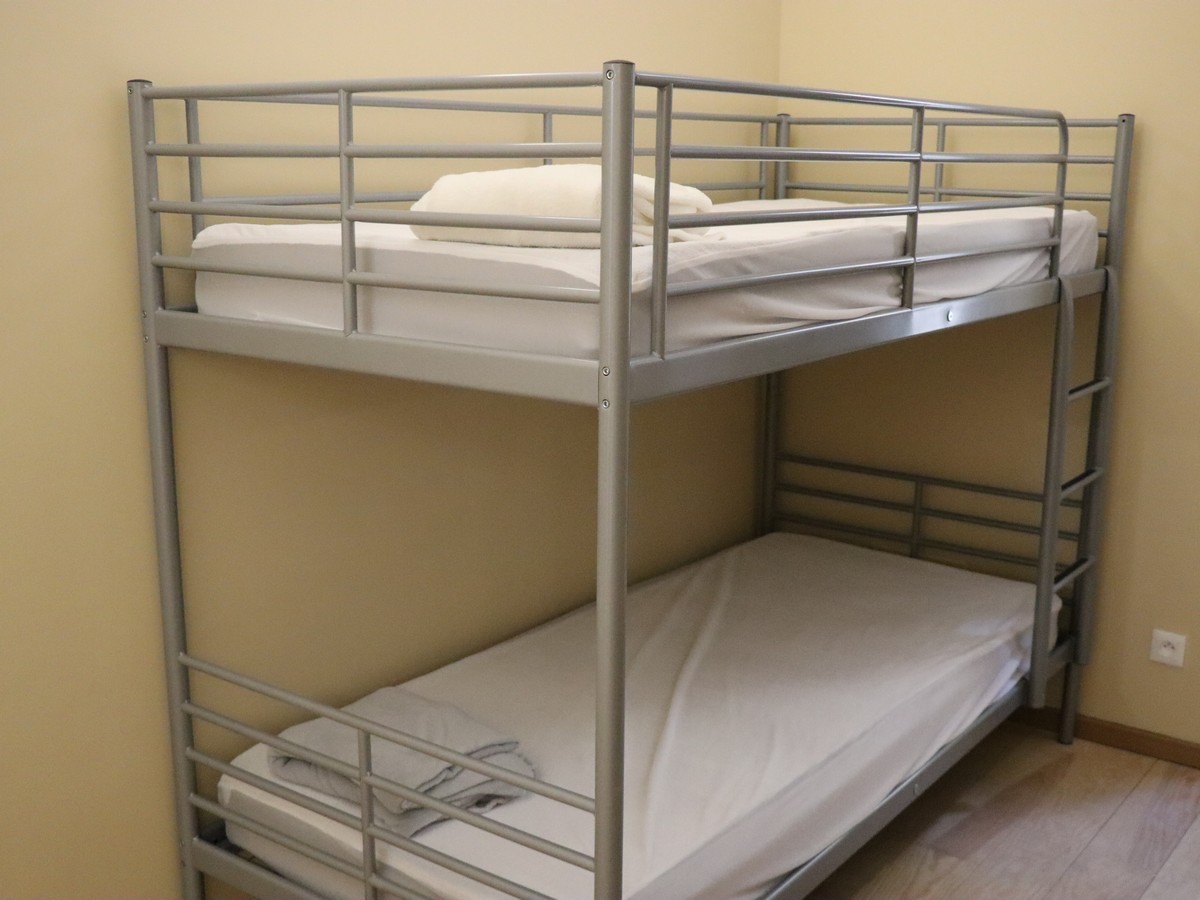 – à l’étage : une chambre avec 2 lits simples et 2 lits superposés, une salle d’eau (avec un sèche-cheveux à disposition).