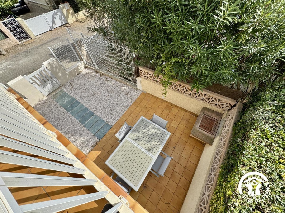 La maison dispose d’une terrasse privative au rez-de-chaussée, entièrement clôturée, équipée d’un mobilier de jardin pour des repas en extérieur ou des moments de détente au soleil. Depuis le balcon, vous pourrez admirer l’horizon partielle et la mer Méditerranée. Un parking privé sur place vous assure confort et tranquillité tout au long de votre séjour.