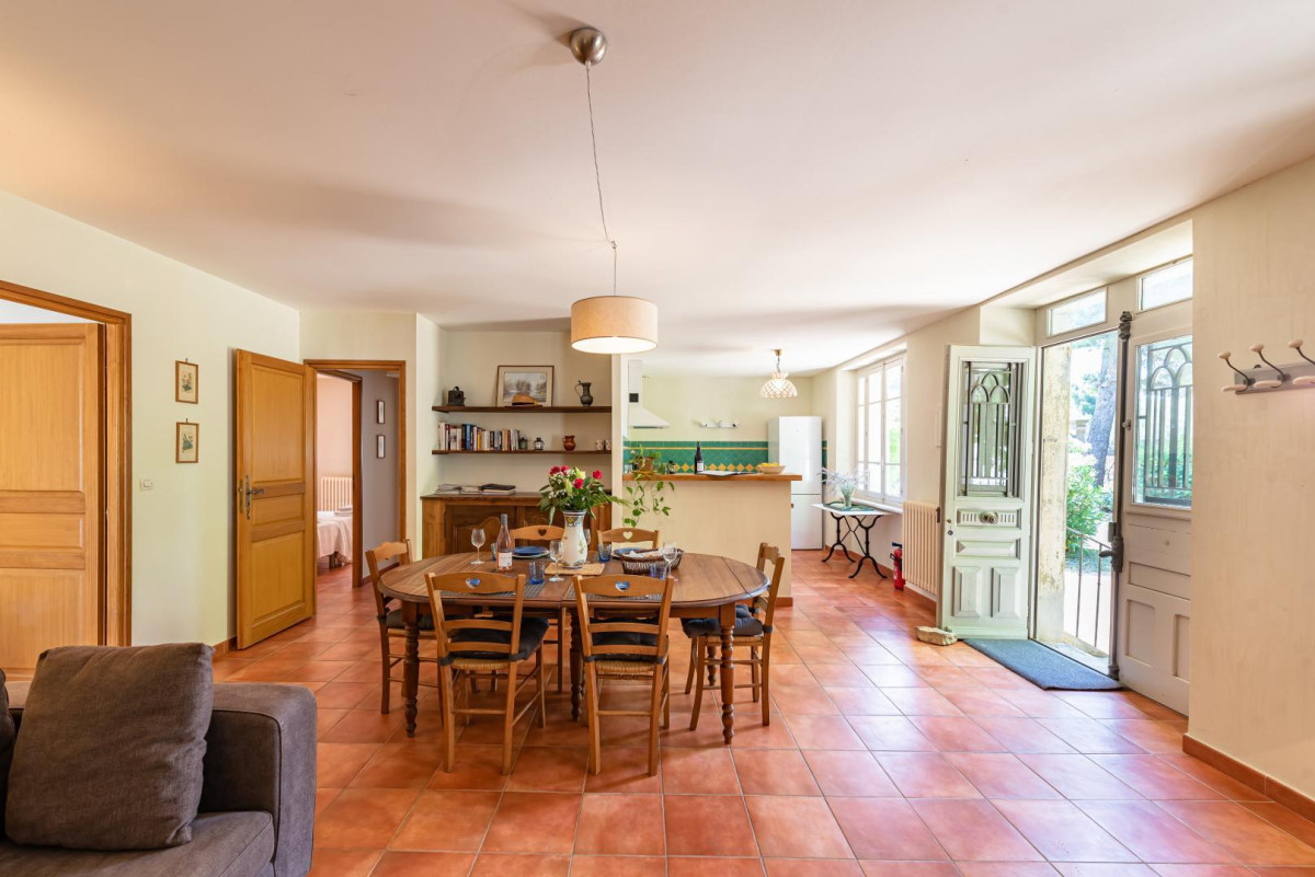 Draps et serviettes fournis ( lits faits à l’arrivée ).Jardin privatif ombragé entièrement clos avec salon de jardin et BBQ, piscine ( 15 x 6 ) et court de tennis communs aux 3 gîtes.