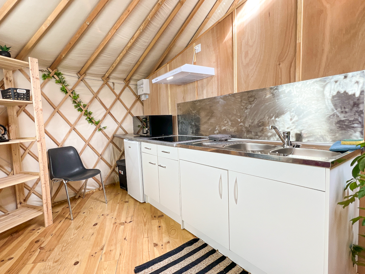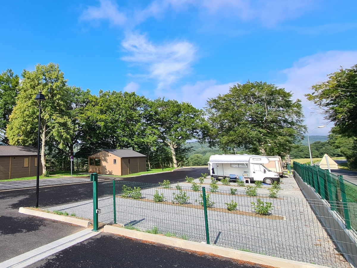 6 emplacements de camping-car avec services eau potable, vidange eaux usées et toilettes chimiques, container, électricité