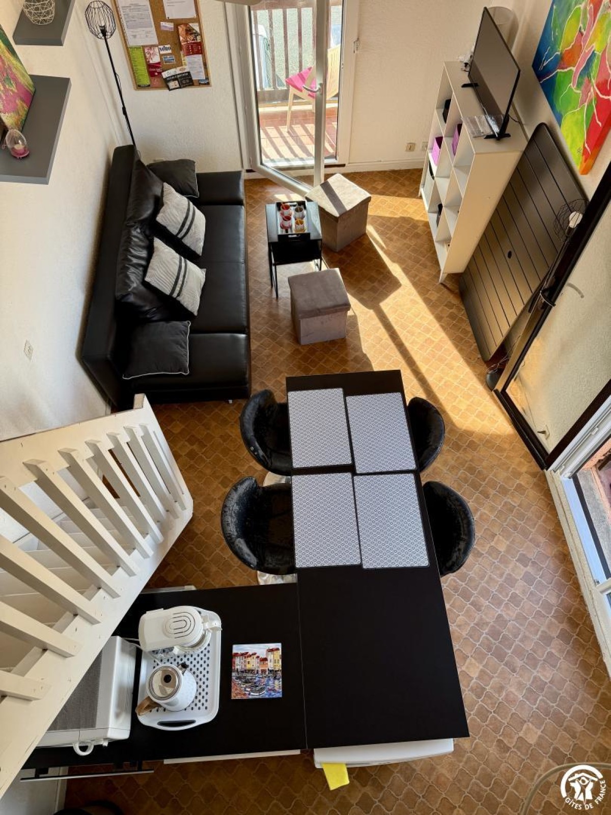 -une mezzanine ouverte sur le séjour avec deux lits en 90, pouvant être rapprochés.