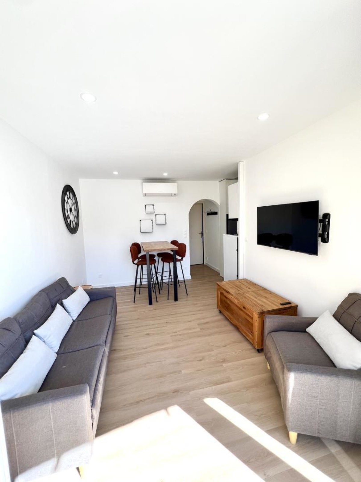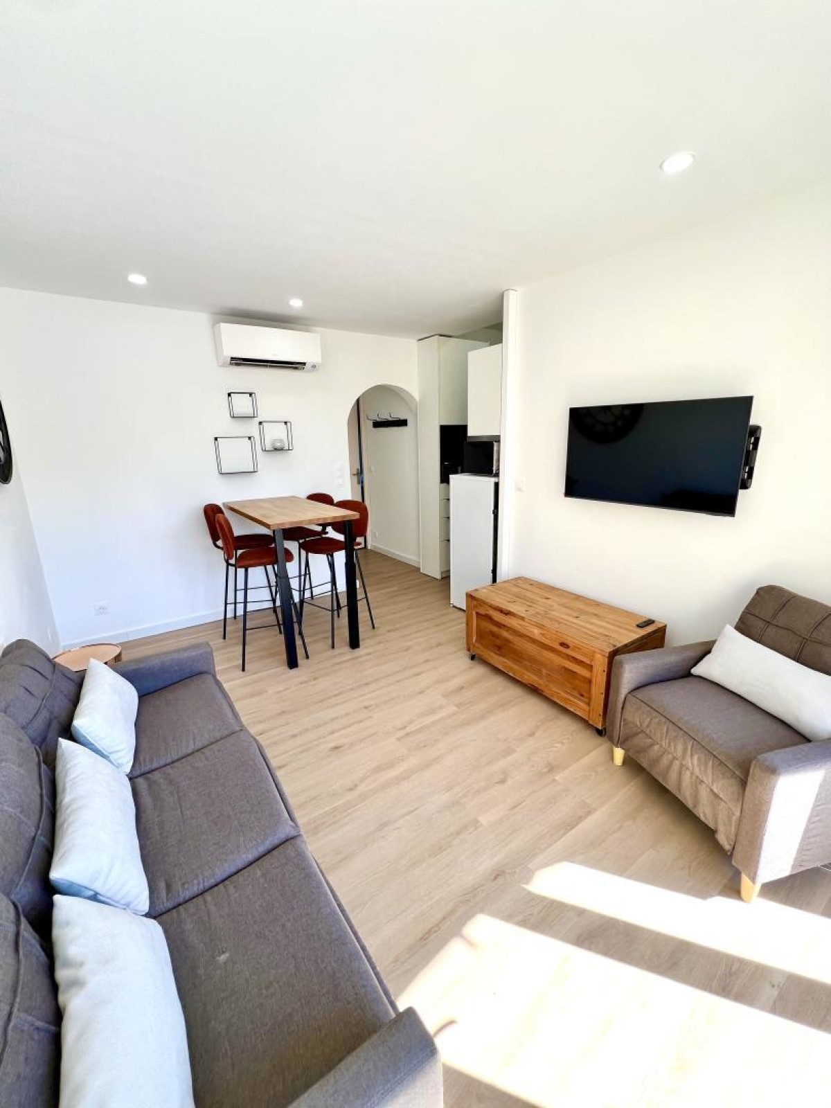 À l’extérieur, vous disposez d’une agréable terrasse équipée d’un salon de jardin, parfaite pour profiter du climat doux et des soirées au bord de la mer. Le stationnement est possible sur le parking public situé sur la placette, juste à proximité. Les charges sont incluses et le gîte bénéficie de la climatisation, appréciable en saison estivale.