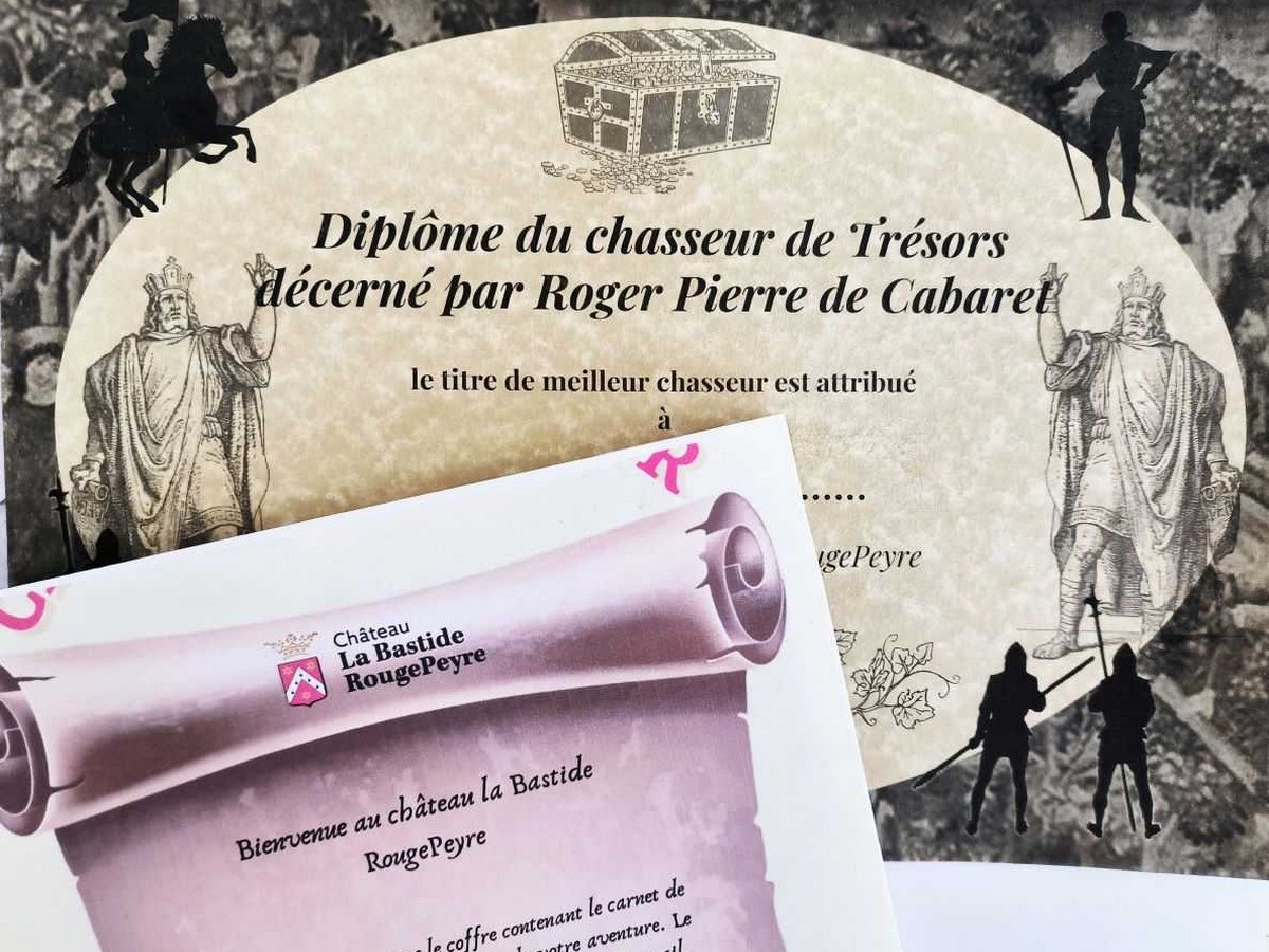 Vous repartirez avec un cadeau que vous trouverez vous-mêmes et un Diplôme du Chasseur des Trésors décerné par le chevalier Cathare Roger Pierre de Cabaret, fondateur du domaine en 1209.
