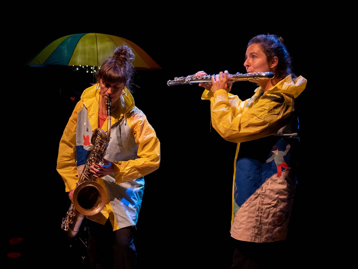Deux musiciennes exploratrices font de la thématique du dedans-dehors leur terrain de jeu. Du dedans de la maison au dehors du jardin, de l’intérieur de nos têtes aux vertiges de l’univers, elles nous plongent dans un voyage vocal et corporel. A la manière d’un concert, chaque chanson, chaque morceau, chaque témoignage d’enfant recueilli et diffusé sur bande son, offre un tableau sonore différent. Tantôt château fort, parterre fleuri, ou corps d’enfants, 4 caissons de bois transforment l’espace pour raconter le passage de soi au monde, de l’intime vers l’aventure de l’ailleurs.