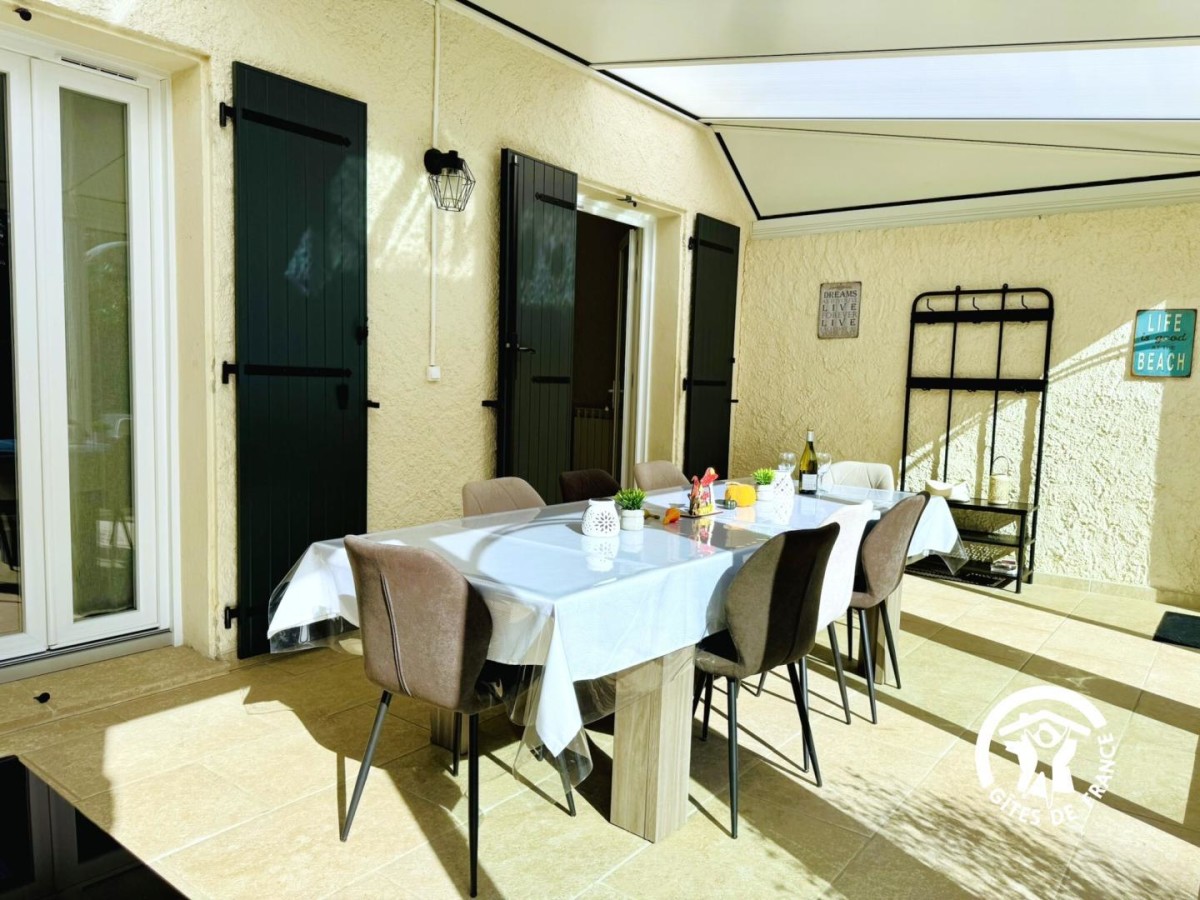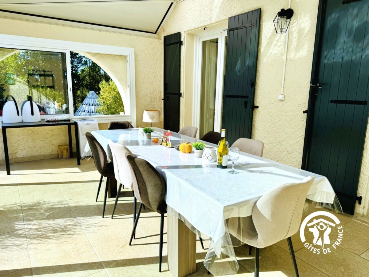 – Un séjour avec un coin salon (Tv connectée et canapé), une table à manger et une cuisine ouverte toute équipée (lave-vaisselle, frigo-congélateur, cafetière à filtre et expresso, micro-ondes, four).