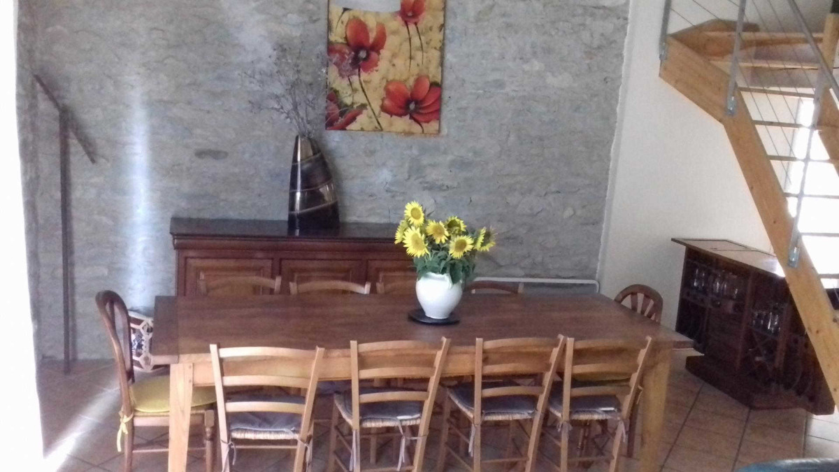Le gîte, conçu principalement pour accueillir des familles et amis, comprend une pièce de vie spacieuse et conviviale dont la baie vitrée ouvre sur une terrasse et un grand espace arboré avec barbecue et salon de jardin.
