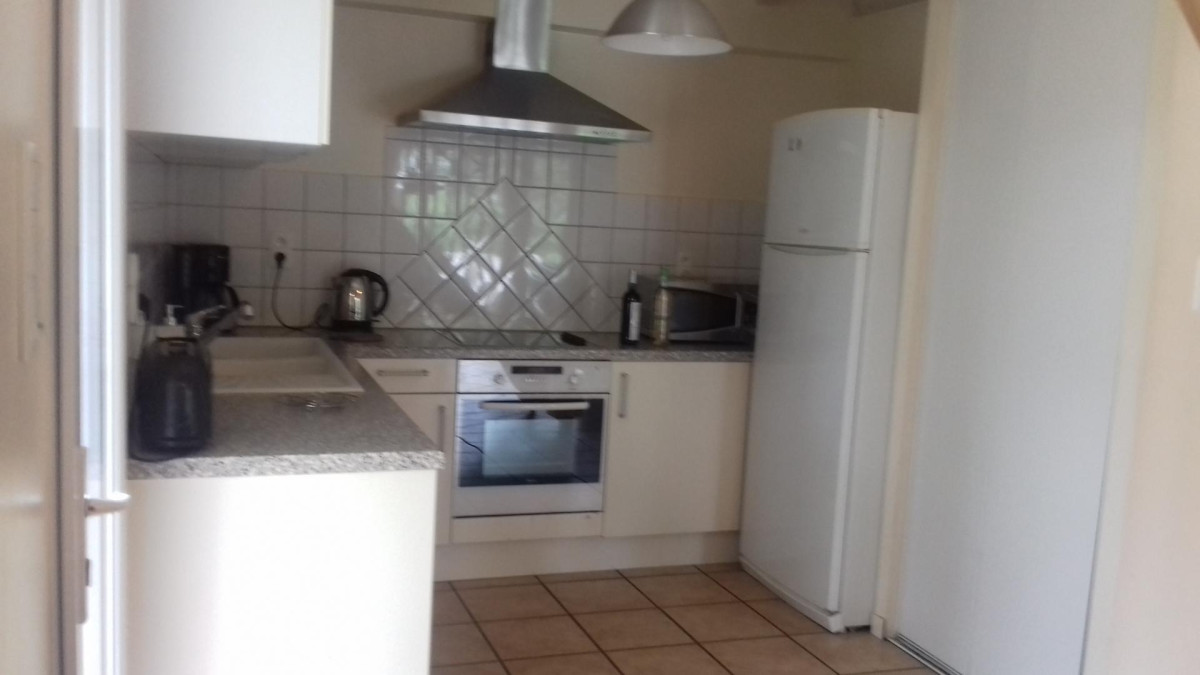 Au rez-de-chaussée : Grand séjour-cuisine, cheminée insert, TV, DVD, une salle de bain et un WC indépendant, deux chambres (2 lits en 160×200).
