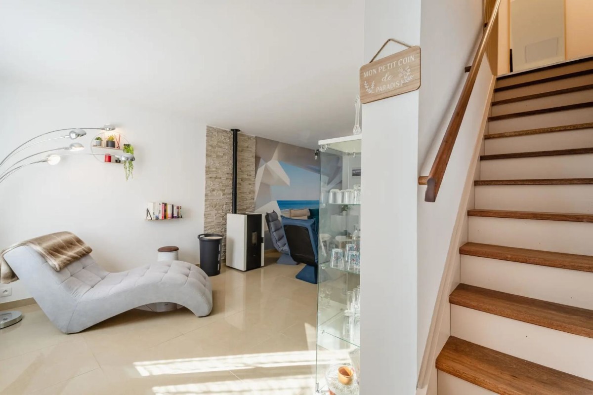 Située dans un lotissement très calme, la maison entièrement rénovée et climatisée vous propose :