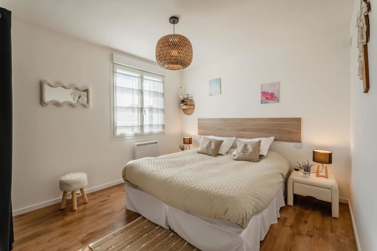-Une chambre avec un lit en 160, TV et placard,